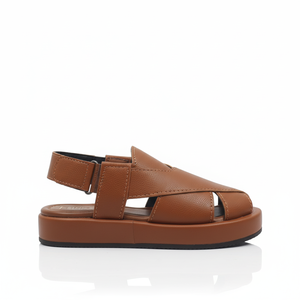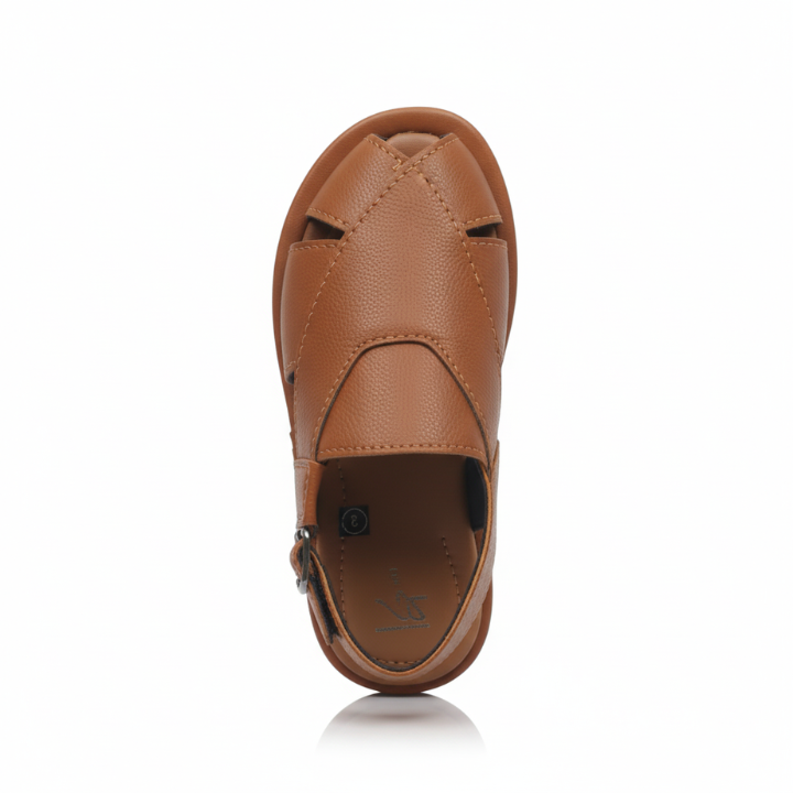 Our Premium Classic Brown Peshawari Chappal blends comfort and style perfectly. Crafted from high-quality synthetic leather, it’s durable for daily use. The soft, anti-slip sole offers extra grip and ensures safe steps for your little one, making it ideal for casual wear, events, and everyday activities.
