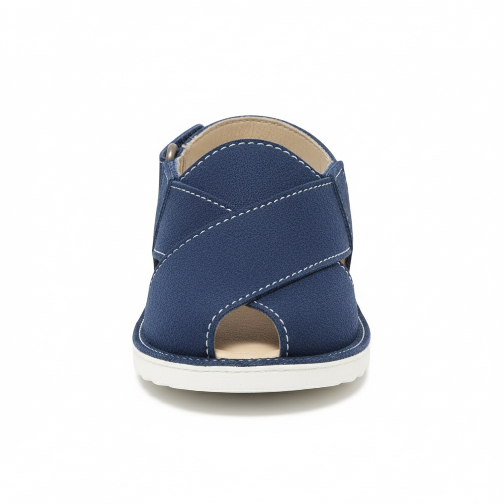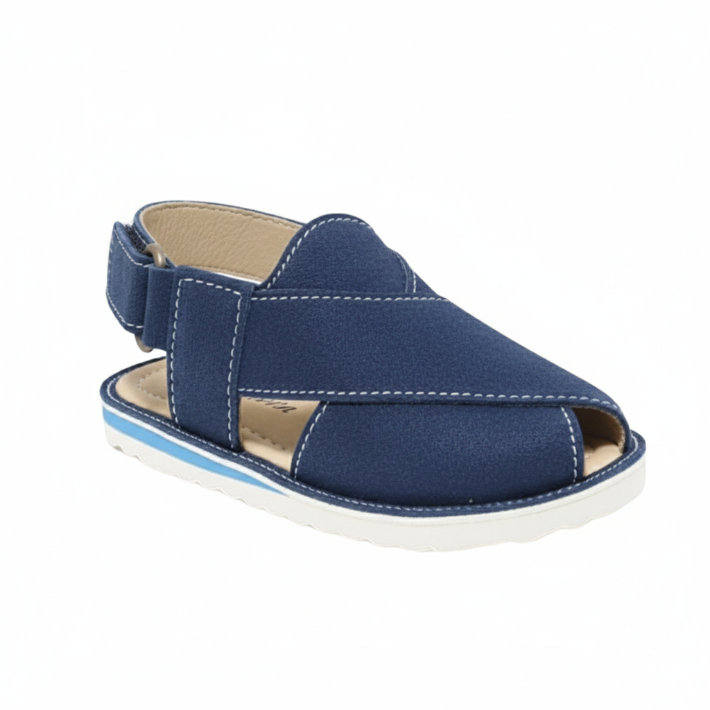Our Kids Stylish Blue Peshawari Sandal brings a modern twist to tradition. Made with durable synthetic leather and a soft cushioned sole, it ensures all-day comfort and safe steps. The elegant blue design with contrast stitching makes it perfect for casual wear, festive occasions, and everyday activities for your child.